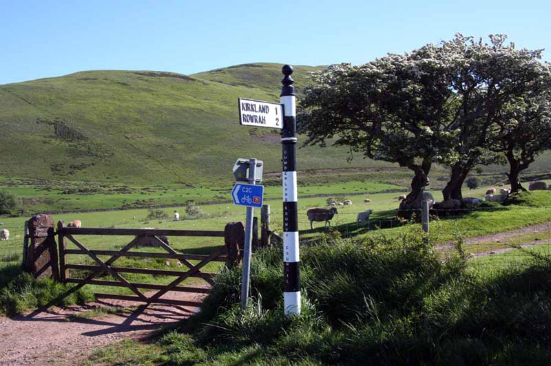through Ennerdale Bridge. Beyond lies the valley and the lake,