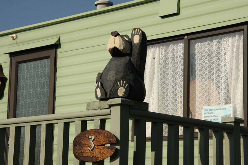 Further on, by one of the caravans, there was a smaller one of these bears, with his paw raised, in welcome to visitors.