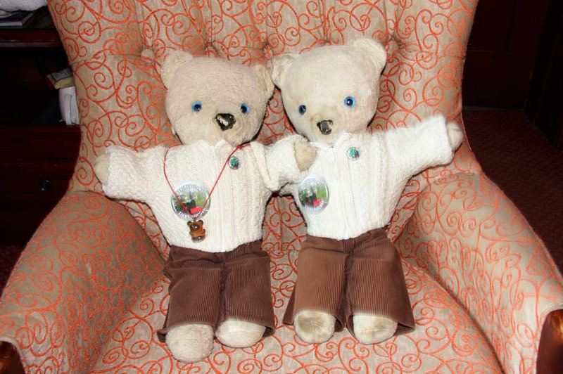 So, we all trooped up to the room, where Uncle Brian, Fred and Gladly were waiting. Fred and Gladly are our joint Chief Hug Bears, and for Fred, today was significant, as it was his 30th birthday. So we all join in wishing him a Happy Birthday, and we just had to include his picture, sitting with his brother Gladly. Fred is on the left.