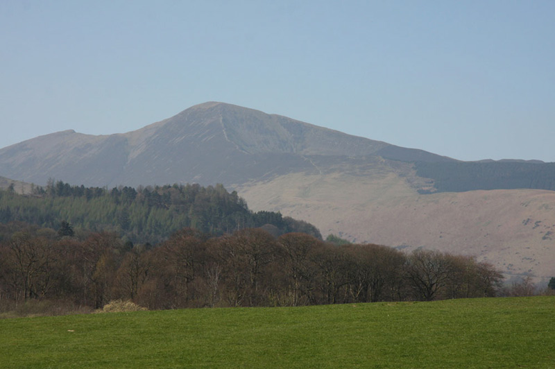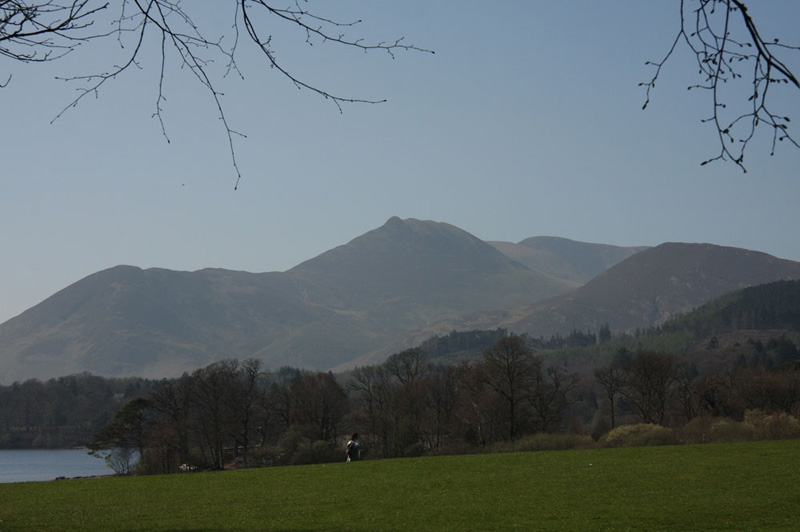 Despite the sunny day, the views were rather hazy, hence the mountains looked rather brooding. Broad End is left rising to Skiddaw, while to the right is Ullock Pike.