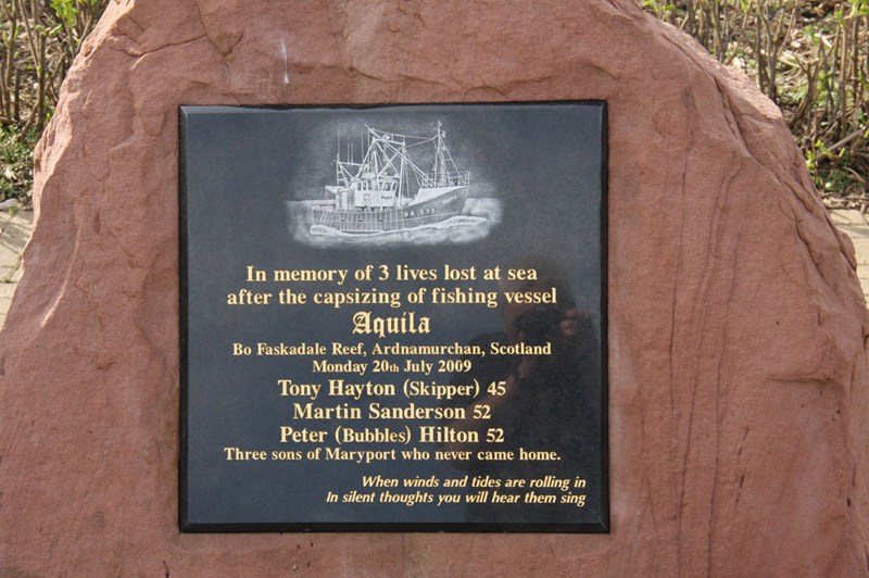 On the way we passed this memorial to three trawlermen from Maryport, who had drowned. The tragedy happened some 20 miles off Mallaig in Scotland, when the nets of the scallop trawler Aquila, had snagged on an uncharted obstruction, so causing a violent capsize of the vessel. It brought home to us what a dangerous occupation this is.