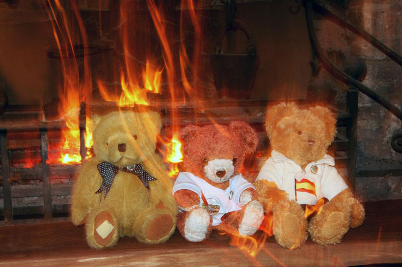 Today we rather took a back seat, as Dad and Uncle Brian, went to visit a friend, Joyce Porter, who they know from the Northern Sinfonia, and who is the friends coordinator. Ally, Bramble and myself went along however, as afterwards we went to Aunt Julie's at Chillingham Castle, for lunch. We went in too, of course. Before leaving, we sat in front of the blazing log fire, while Dad took our picture, which produced a rather unusual effect. Don't worry though, we were not really surrounded by the flames.