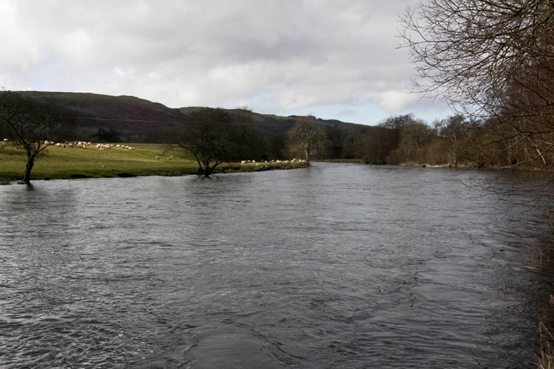 On towards High Close Farm, the track kept pretty straight, but the river bent away south in a loop. We had left the forestry, and the views opened up.