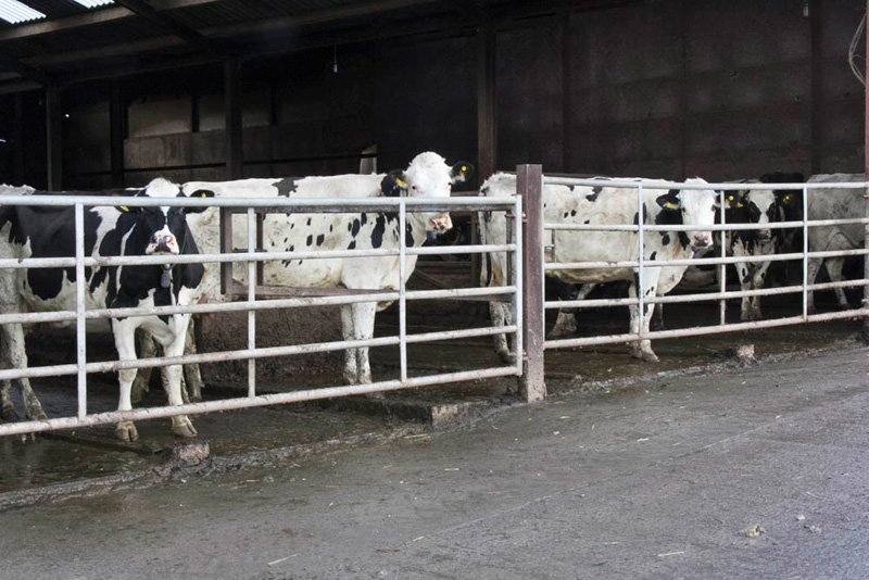 A gate gave access to the yard, where in a barn, some cows looked inquisitively through the gates.