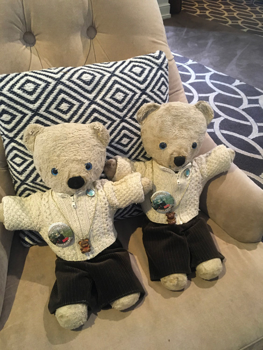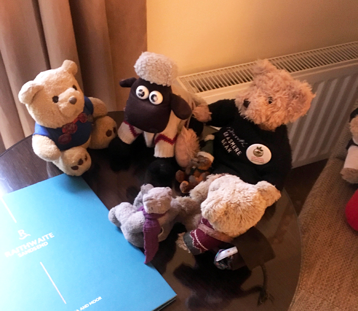 Gladly replied, "Byron who was adopted in Whitby, and Ruswarp who was adopted from the Mallyon Spout Hotel. Then to complete the holiday hug Clare and Jack. They were adopted from Stella Bolland in Leyburn. Uncle Gary, the concierge at Raithwaite knew Stella, so we are sure he will like to see them."