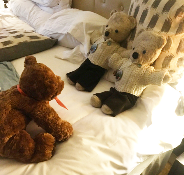 Dad said, "hi, good to see you. I have brought two of Stella Bolland's bears. They are in the car."