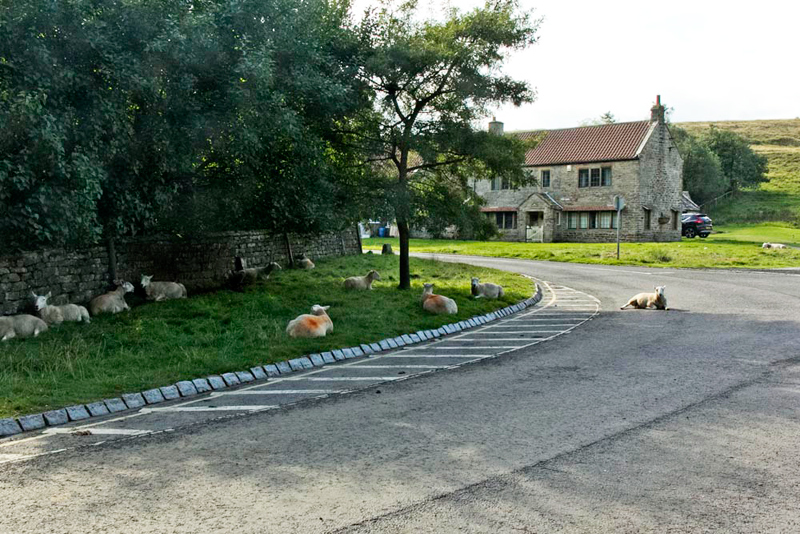 As we strolled on Byron commented. "look at that sheep sitting in the middle of the road."