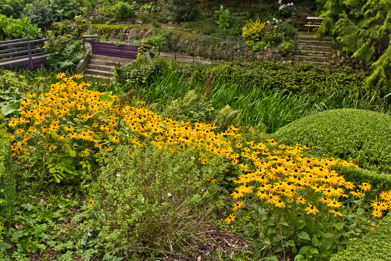 Crossing the bridge to walk along the top path, Gladly called out, "that will make a lovely picture of the gardens bathed in sunlight."