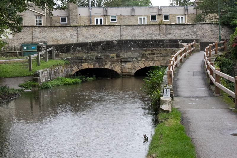 We strolled back along the path by the stream, this low double arched bridge carrying the road. "It is Thornton Bridge", Fred told us later. "Built early - mid 18th century, widened and partly rebuilt mid 19th century. We saw the upstream side that has two elliptical arches, separated by a dwarf buttress pier. On the down stream side there are three arches, one spanning the diverted millstream."