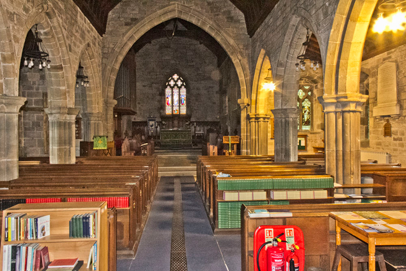 The nave and chancel beyond are 14th century. The arcades either side and the chancel arch are 15th century. In 1865-66 the nave was restored and the chancel and vestry rebuilt and all the windows were renewed. Here is the chancel.
