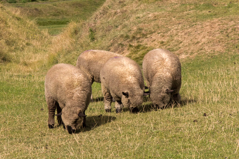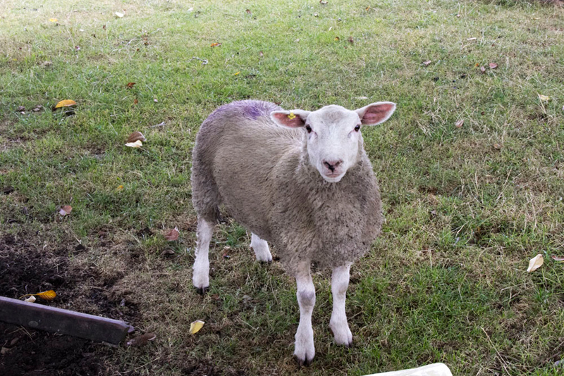 Sheep were freely grazing on the green, and this one was quite tame and inquisitive. It sniffed us then sniffed and almost nibbled at Dad's exposed toes!