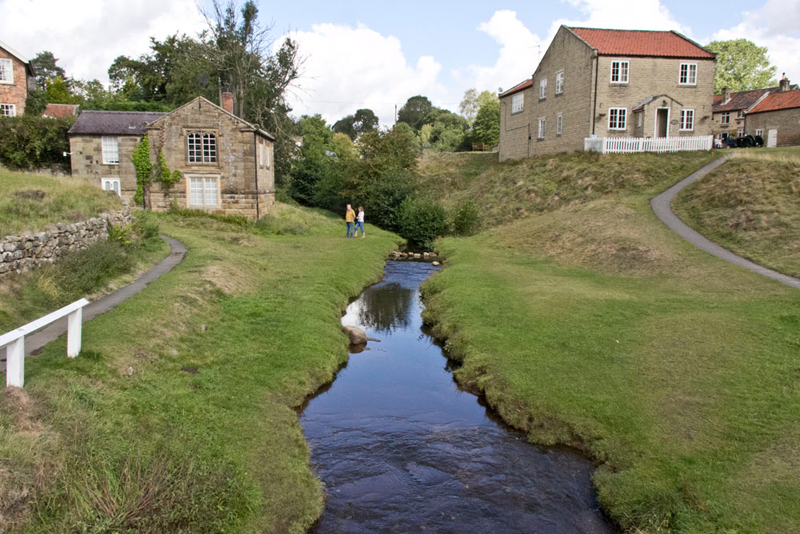 Strolling the green we crossed a footbridge over the Hutton Beck.