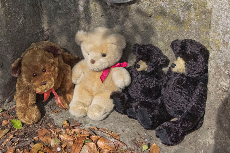 Close by the tree stands the war memorial. "We'll sit and wait while you get a shot", said Byron.
