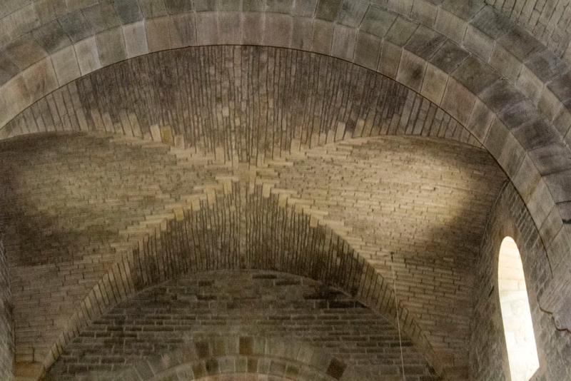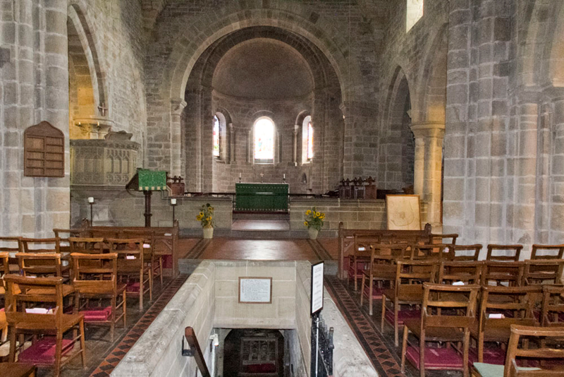 Byron went on, "the chancel, apse and crypt date from 1078-85. The west wall and the nave arcades incorporate crossing piers from the originally planned cruciform church with crossing tower and transepts date from the 13th century."