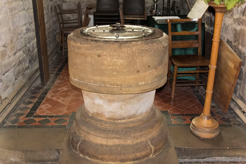 Above the lion's head through which the spring water is thought to have issued, is a wooden plaque in Latin, that translates to - Cedd. Founder of Lastingham Abbey AD 654. Died AD 664 and is buried in the church on the right side of the altar.