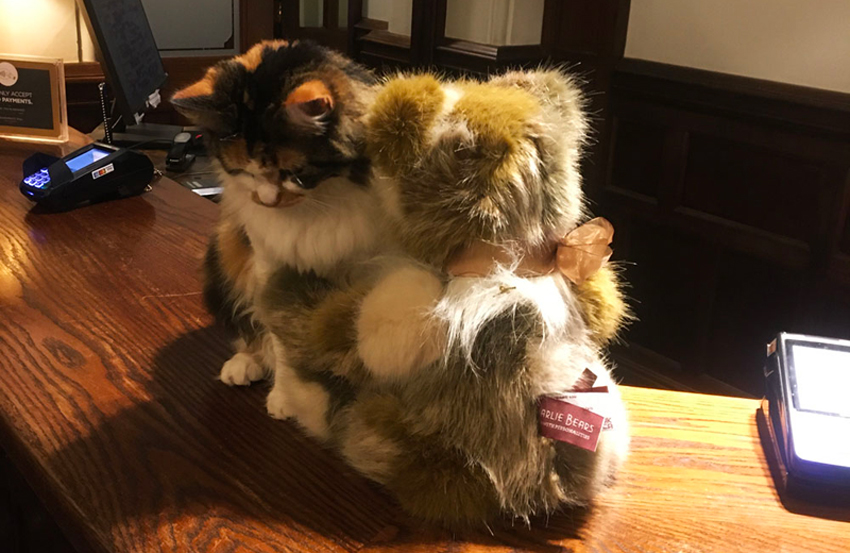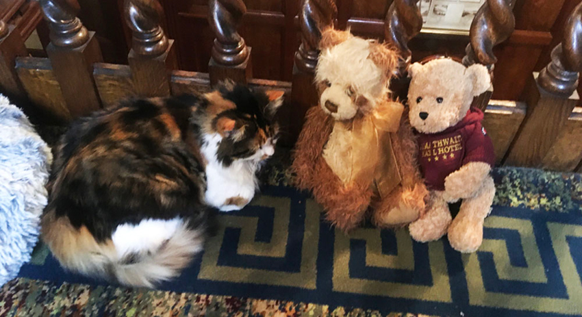 Again we had room service, while Dad went off to The Grill with Rex, Starbuck and Gooseberry Pie. Seeing Sarah on reception Dad chatted and the bears got introduced.