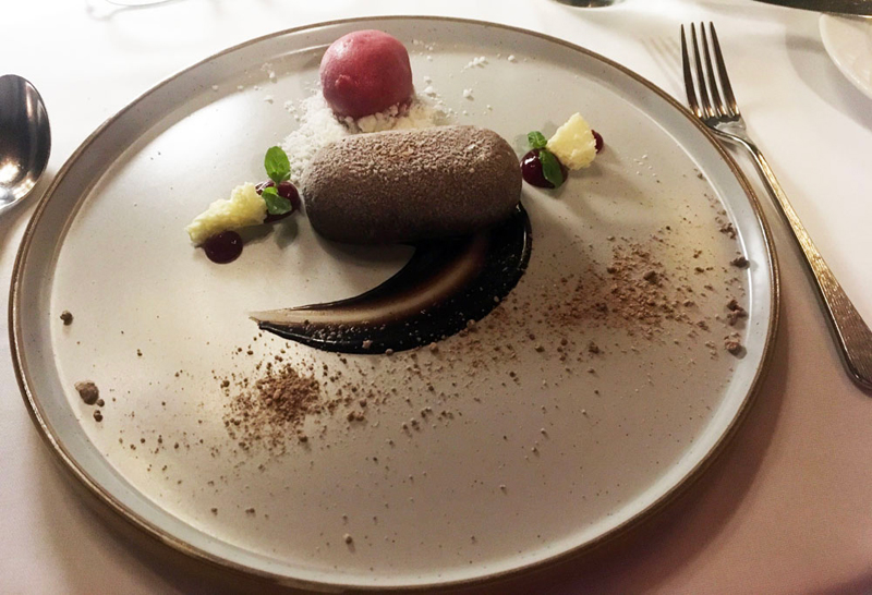 Dad enjoyed a lovely meal - a steak tartare with shallot campers to start, then main of Dover Sole, and then a dessert of Chocolate Hazelnut Cremeux with wild cherry sorbet...