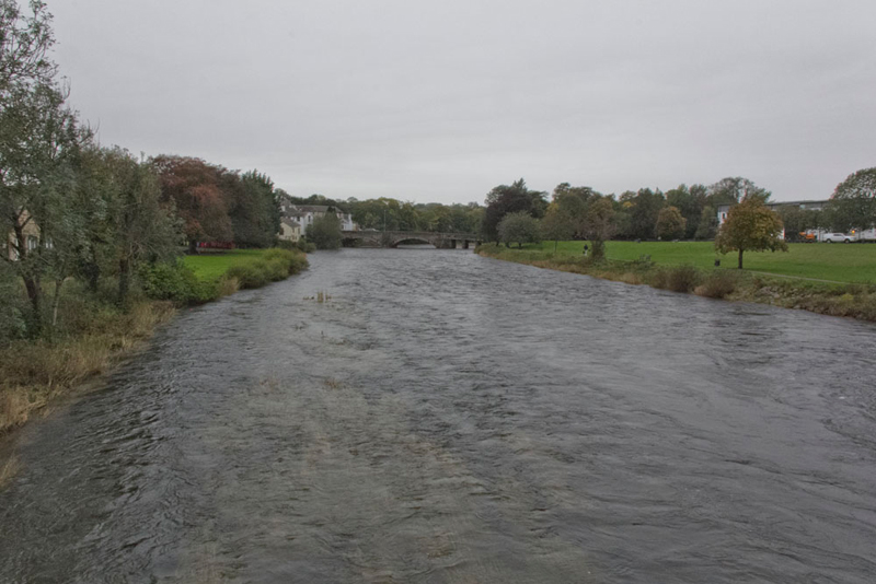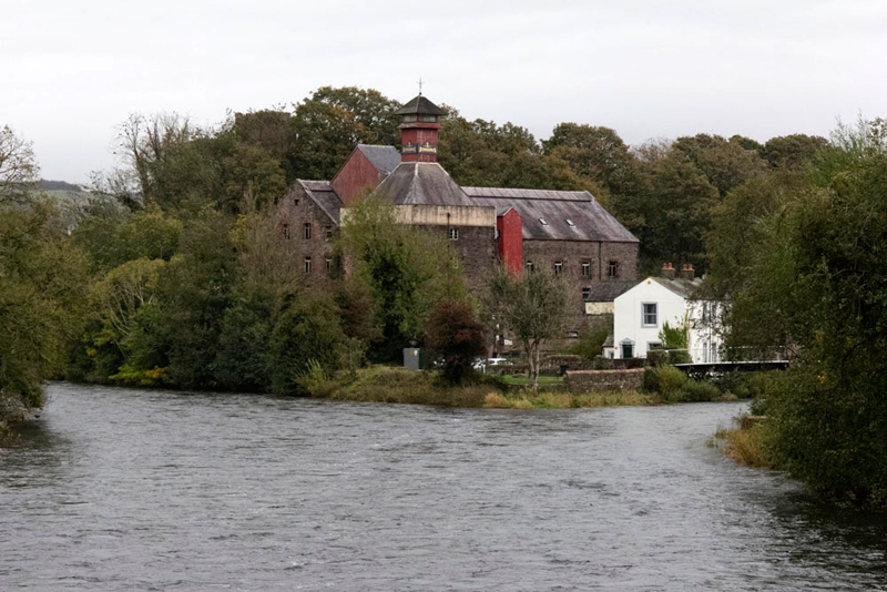 As we made to recross the river, looking left, I said, "there's the confluence of the River Cocker and Derwent, with Jennings Brewery behind."